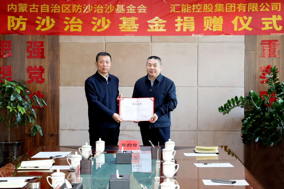 汇能控股集团向内蒙古自治区防沙治沙基金会捐赠仪式在呼和浩特市举行
