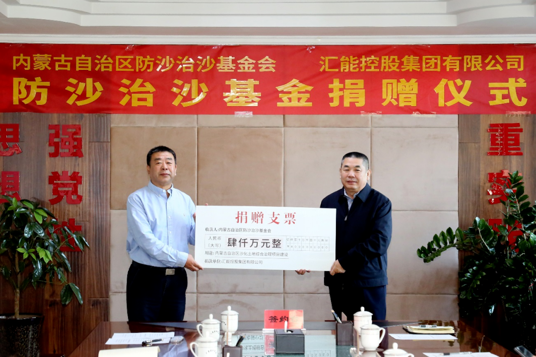 汇能控股集团向内蒙古自治区防沙治沙基金会捐赠资金4000万元